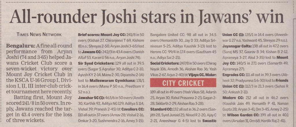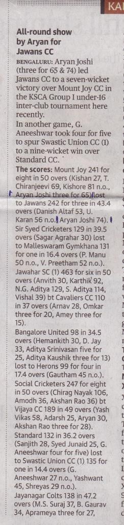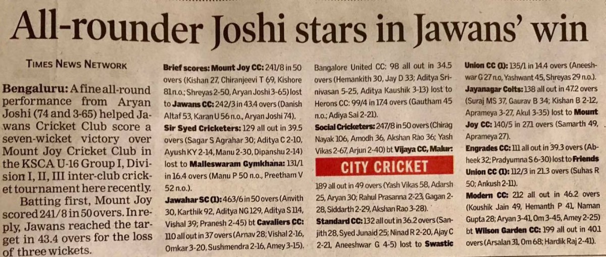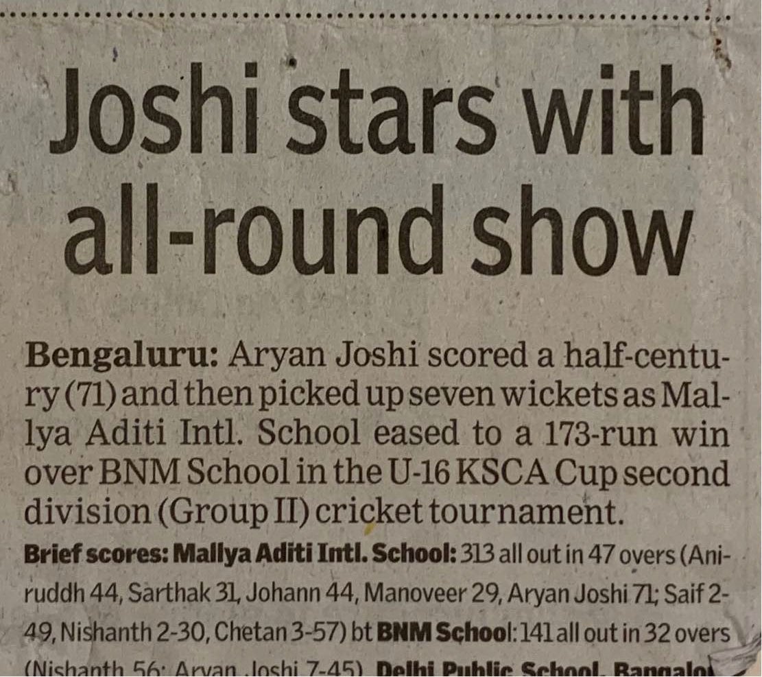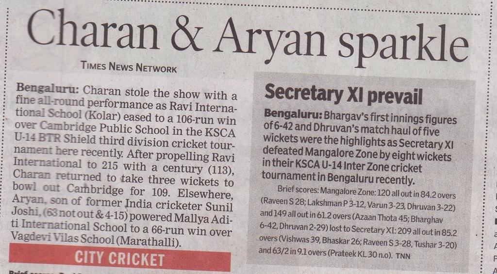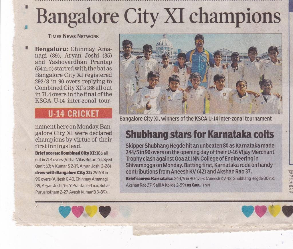 Member of U-14, U-16 & U-19 Karnataka State Cricket Association Team Zonals – Grades 8 to 12