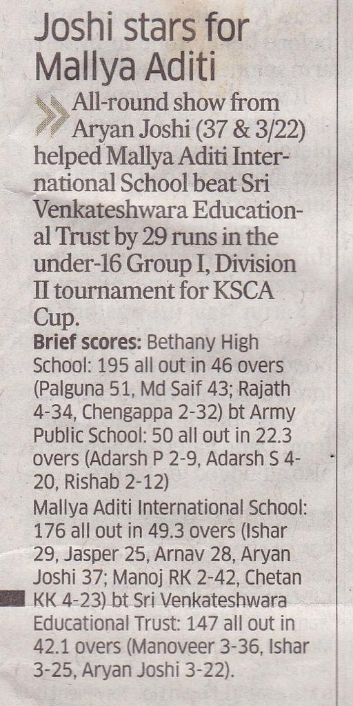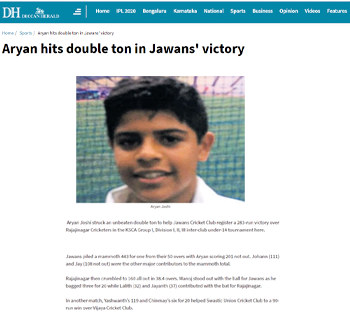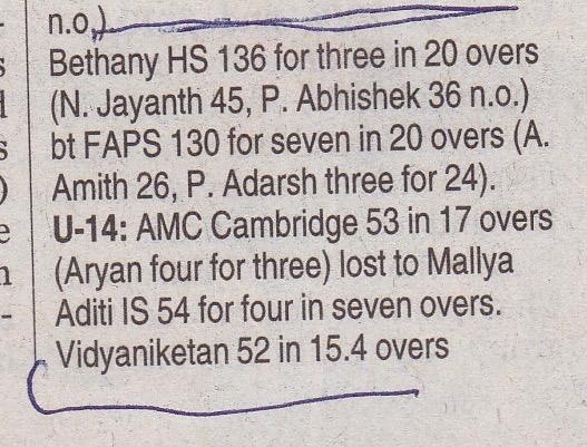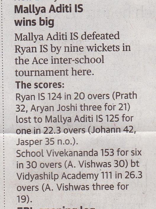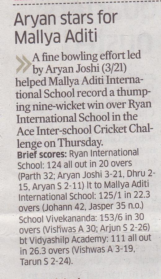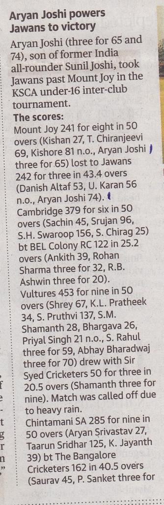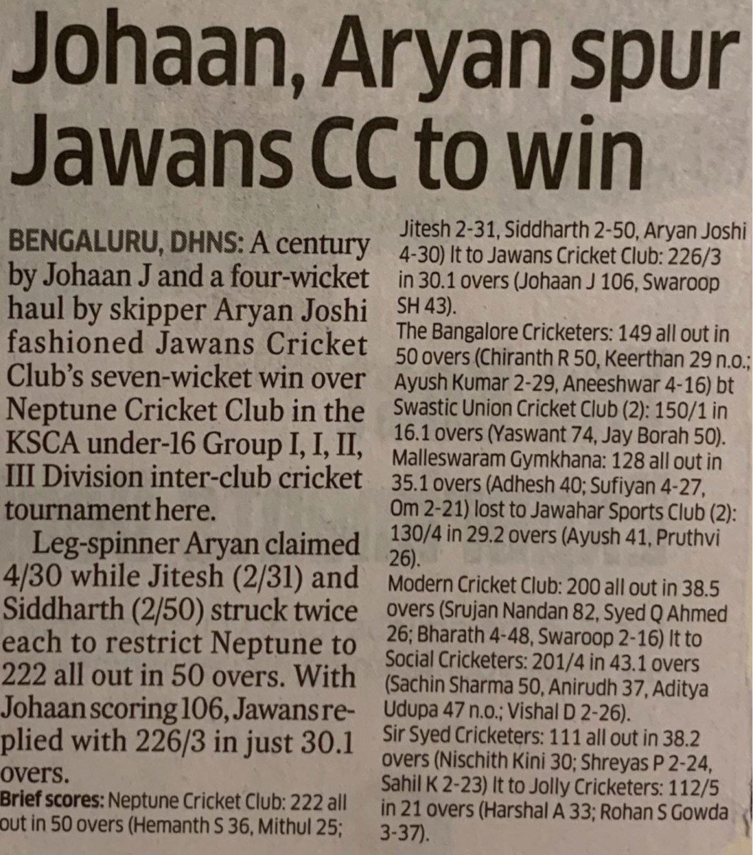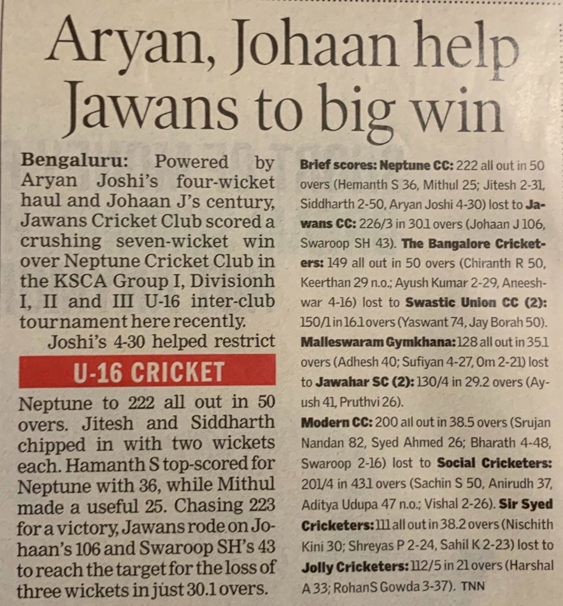 Member of U-14, U-16 & U-19 Karnataka State Cricket Association Team Zonals – Grades 8 to 12