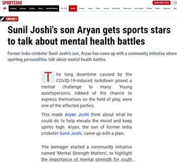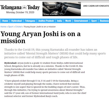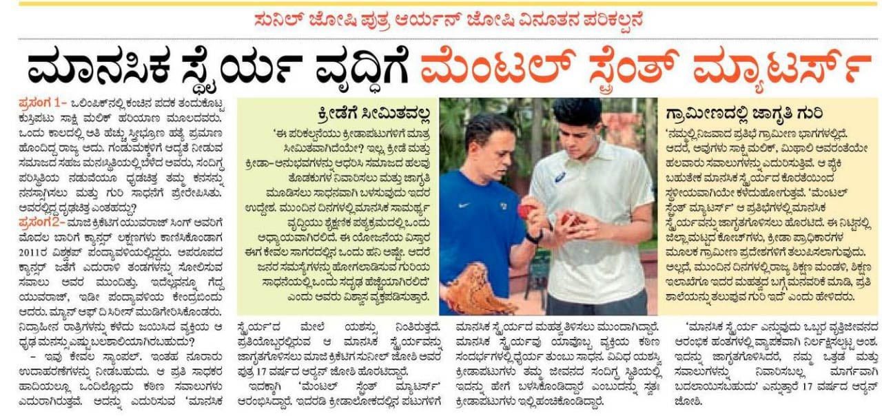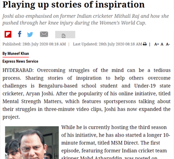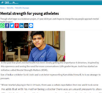 Mental strength matters has evolved from its conception as a simple social media page to help young athletes to a campaign championing the importance of mental strength in the lives of individuals. M.S.M has touched hundreds of thousands of lives in a hope to empower and inspire as many people as possible. M.S.M has worked with numerous news outlets to spread the message on a grassroot level by publishing articles in both print and digital in regional languages to sustain and develop a multifaceted approach to raise awareness.